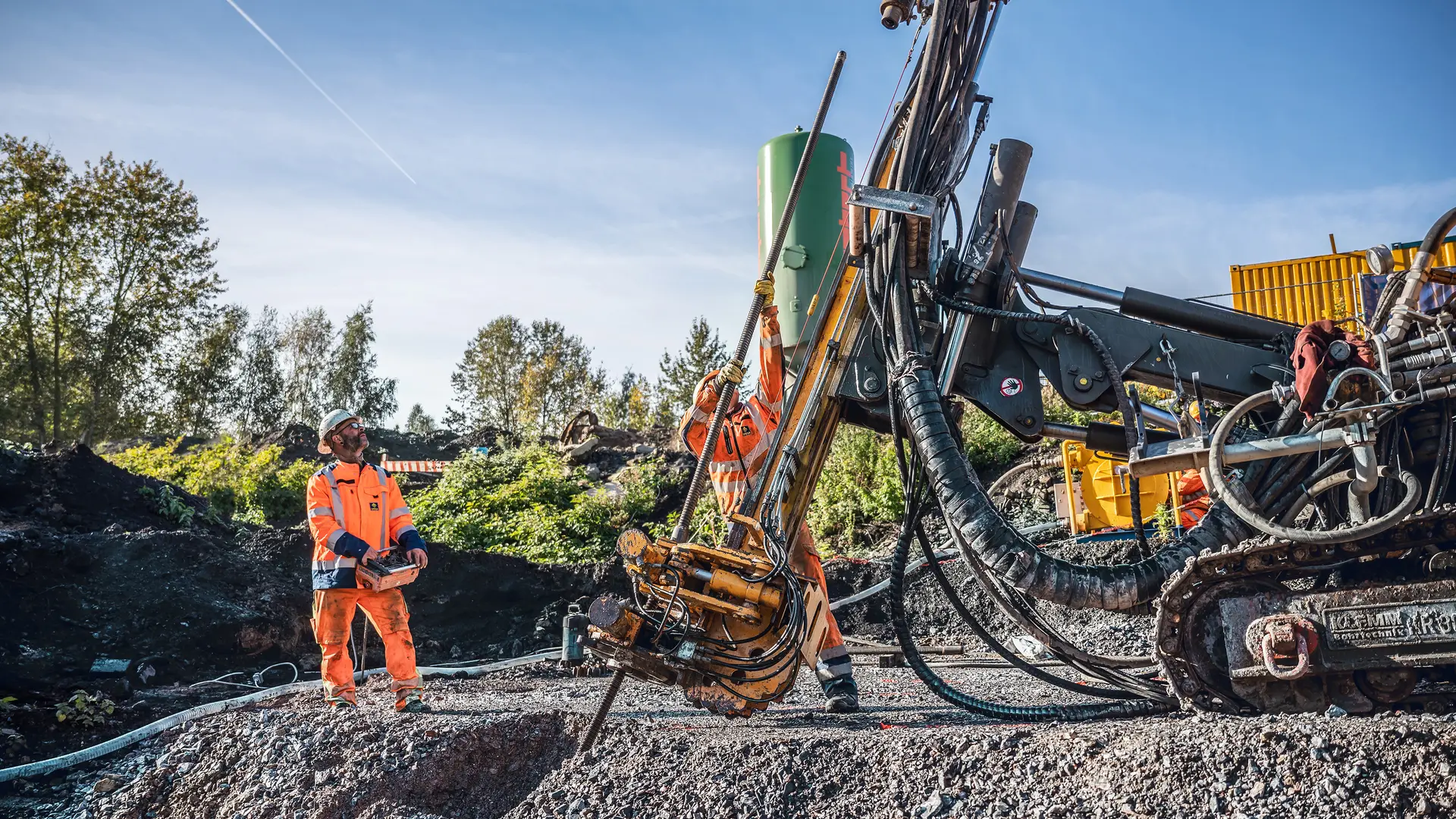 SPESA Spezialbau und Sanierung GmbH was tasked by the city of Dortmund to carry out foundation and soil improvement measures for the new building of the “Haldensprung” pedestrian and bicycle bridge. “For the foundation, we will install a total of 140 micropiles on the individual foundations of the new bridge,” explains Sebastian Otto, Project Manager at Spesa. “We will also execute 2,100 m of soil improvement using the low-pressure erosion method developed by Spesa.” One KLEMM KR 805 and one KLEMM KR 801 drilling rig are in use for the specialist foundation engineering works, as well as three employees per drilling rig. Because work is being carried out on an undeveloped site, it was also necessary to establish the full electrical and water supply. “We also constructed a temporary scaffolding overpass for pedestrians over the adjacent tracks,” continues Sebastian Otto. The work started in May 2024 and is expected to be completed by February 2025. This will lay the foundation for Dortmund’s garden of the future, which is sure to inspire visitors in 2027.